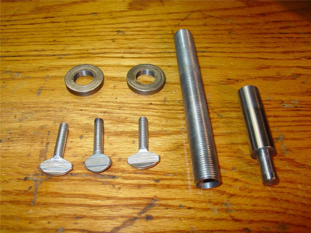 Press, 4 inch threaded anvil holder, 2 knurled lock nuts, extension pin, 3 1 inch thumb screws and wonderful instruction manual with lots of pictures.
