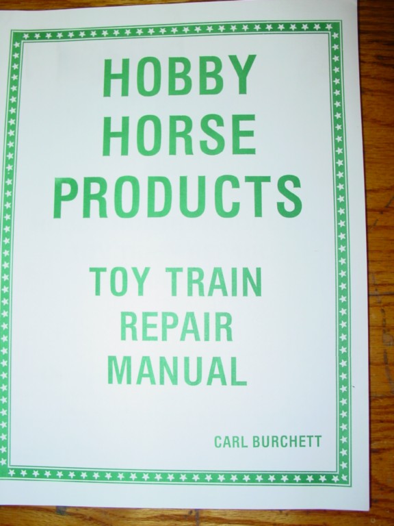 Over 140 pictures and diagrams describing mechanical toy train repairs using hobby horse tools. An excellent reference book for anyone interested in toy trains and a must for anyone interested in toy trains and a must for anyone who does toy train repairs.